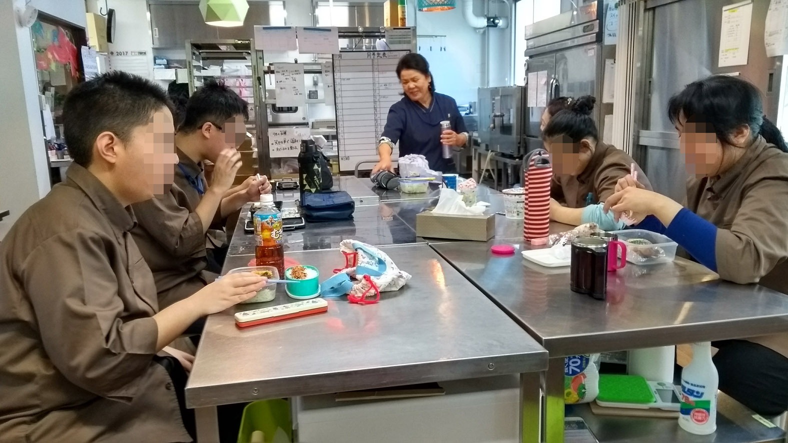 お弁当持参の人も、そうじゃない人も作業台をきれいにして