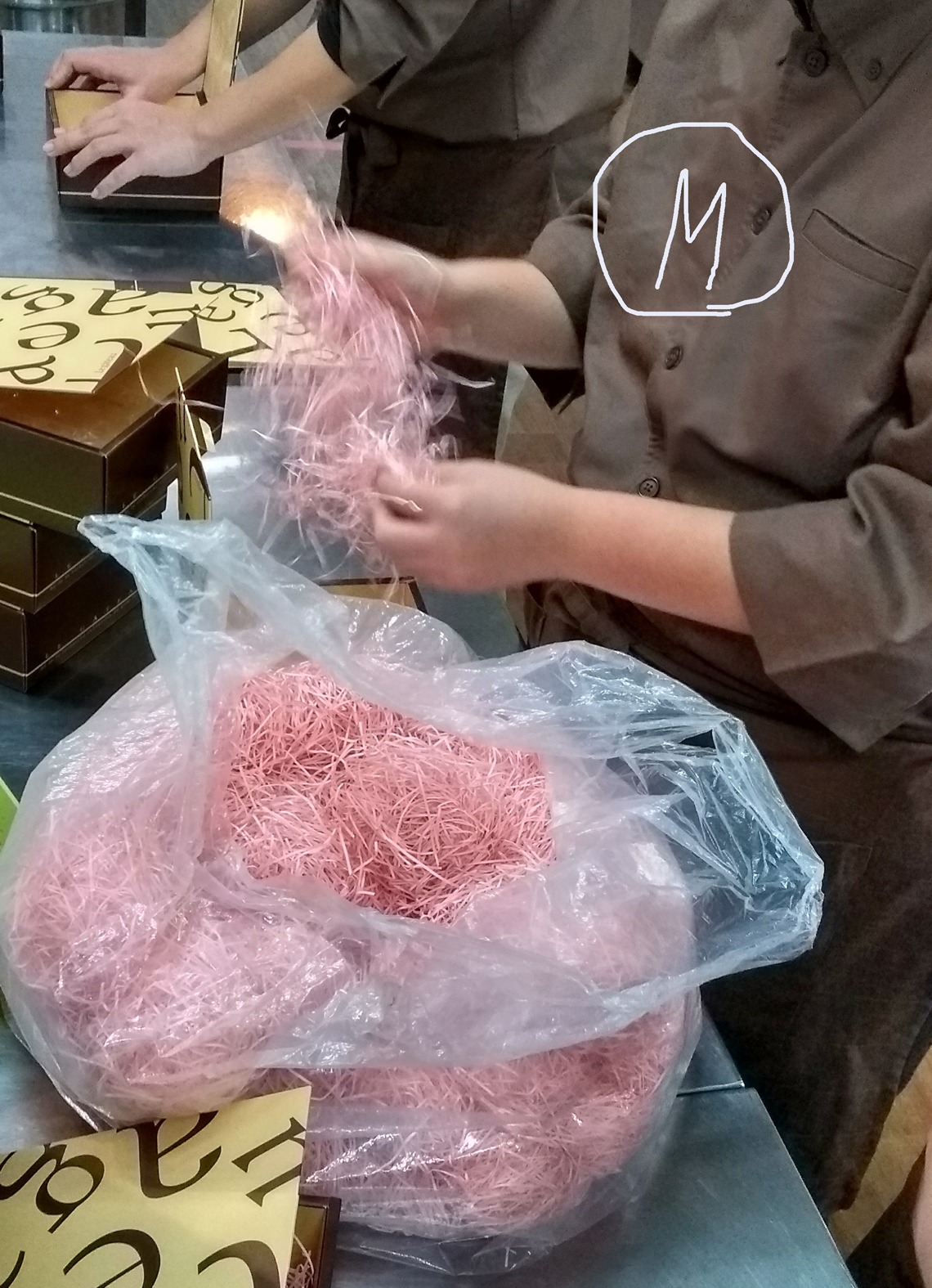 キャストのM君あるいはM画伯、はこのピンク色のクッション材が得意なようです