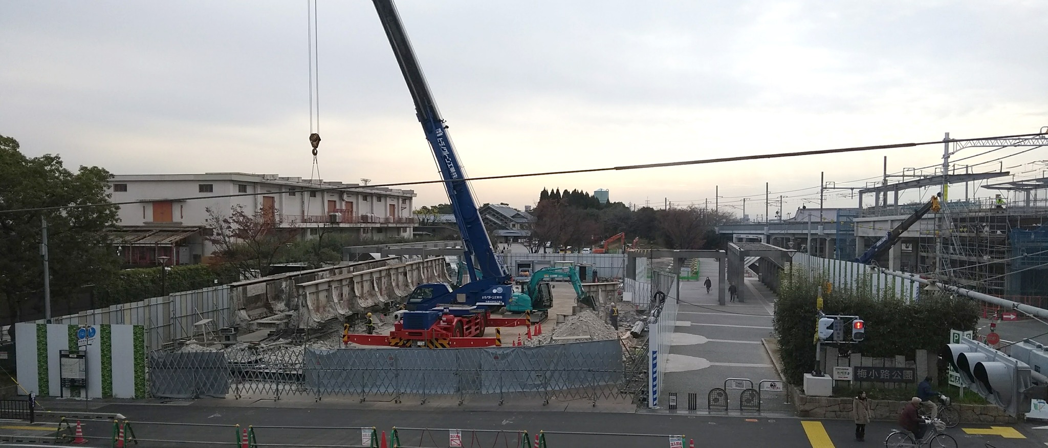 先月には、陸橋の架け替えもおわり、新しい駅の工事が着々とすすんでいます。